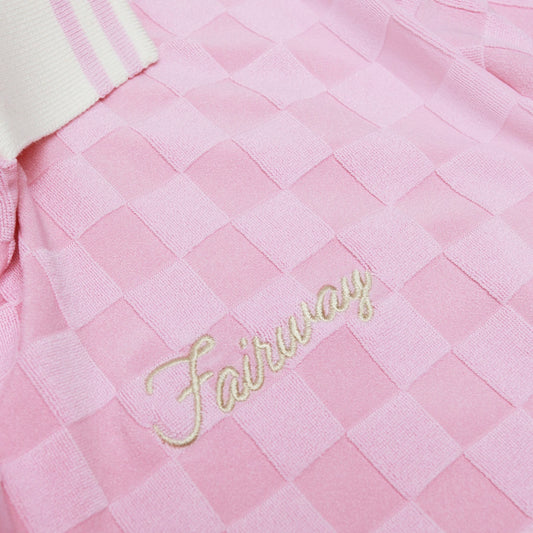 V-Neck Checker Polo (Pink)